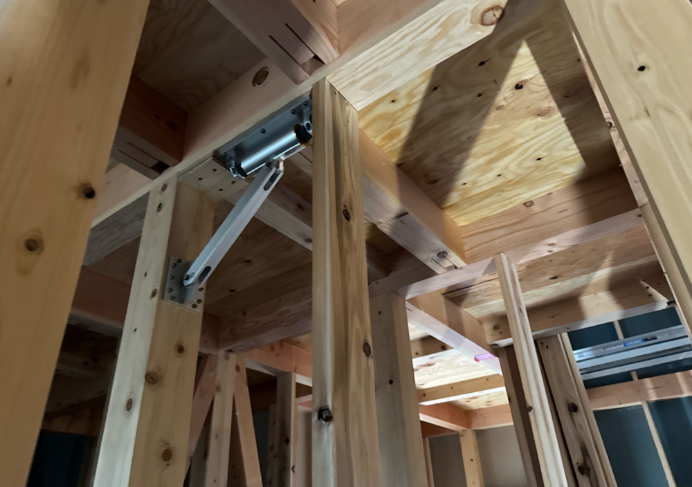 DAITOKUが採用している制震ダンパーは「ダイナコンティ」。繰り返しの揺れにも強く、見えないところでしっかりとお家を守ってくれます。実際の現場では、構造体にしっかりと取り付けられたダンパーが、静かに家を支える姿が印象的でした。