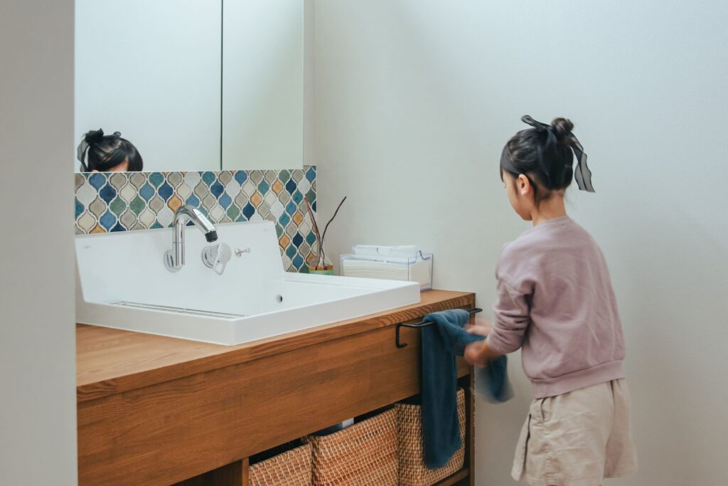 また、実際に暮らしてみて感じるお気に入りの間取りについて伺うと、「玄関ホールの洗面コーナー」との答え。帰宅してすぐの場所に大きな造作洗面台を設けているので、自然と手洗いの習慣がついているそうです。お友達からも評判がよく、「コレうちにも欲しかった!」と言われるのだとか。