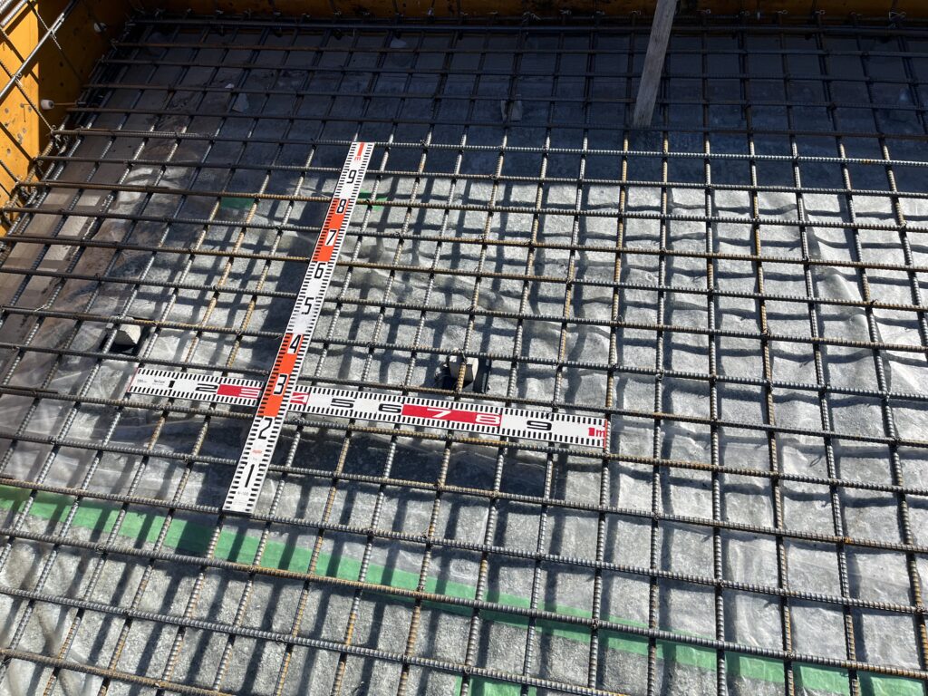 結果は是正無しで合格をいただきました。 図面通りに鉄筋が組まれているか、鉄筋の間隔や太さは適切かなど、プロの厳しい目で細部までチェックを受け、無事にクリアしております。