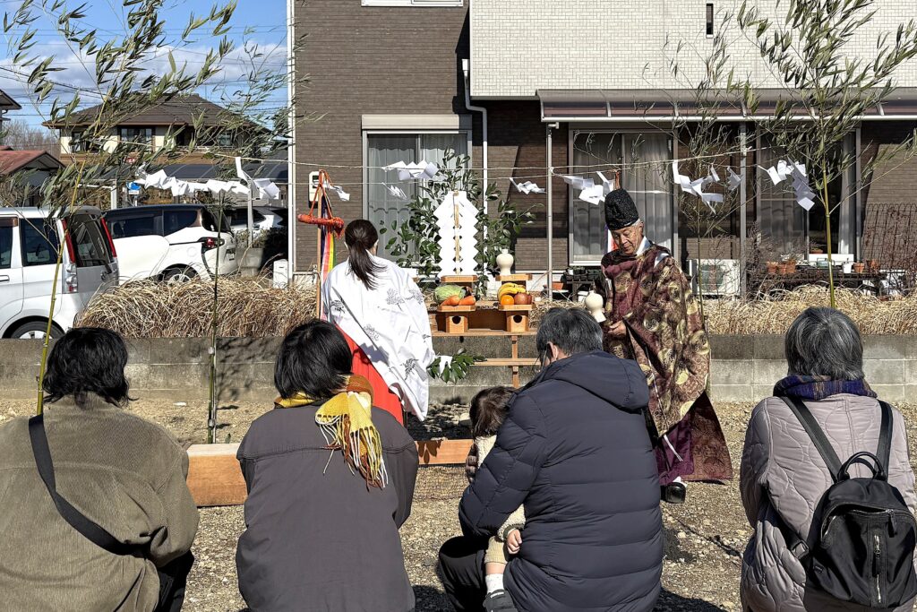 ちょうど寒波が来ているタイミングでしたが、この日は不思議と風も穏やかで、冬らしい澄んだ空気の中での式となりました。現地に立つと、これからここに家が建ち、ご家族の暮らしが積み重なっていくんだなと、何度経験しても背筋が伸びる瞬間です。