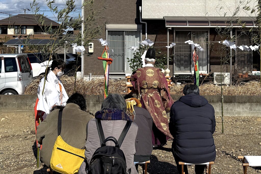 この日の地鎮祭は、生演奏付きの本格的な神事で、現場全体がぐっと引き締まるような、趣のある式になりました。土地の神様にきちんとご挨拶をすることで、いよいよ家づくりが始まる実感が湧いてきます。