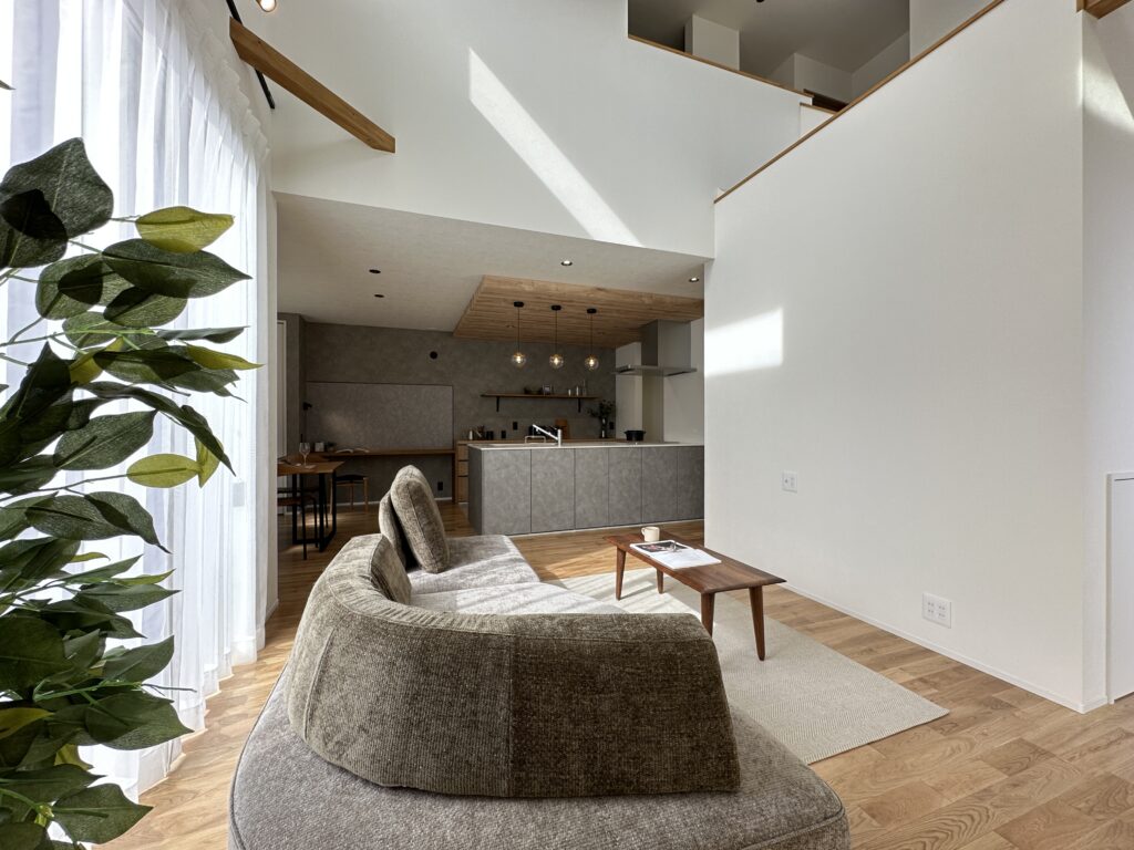 モデルハウスといっても、当社のモデルハウスは、実際にお施主様がこれから暮らすお家を特別にお借りして開催する「モニターハウス型」。住宅展示場にあるような豪華すぎる建物ではなく、34坪というリアルなサイズ感の中に、等身大の暮らしのヒントがぎゅっと詰まっています。