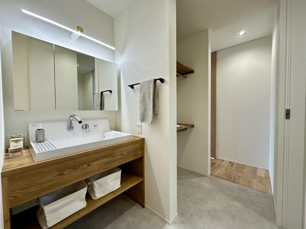 先日、現場で案内を担当しているハウスアドバイザーのスタッフに、「お客様の反応はどうですか?」とこっそり聞いてみました。すると、どのお客様もLDKに入った瞬間「わあ、すごくいいお家ですね!」「自分たちの好みにかなり近いです」と目を輝かせてくださるそうで、その話を聞いて私も自分のことのように嬉しくなってしまいました。