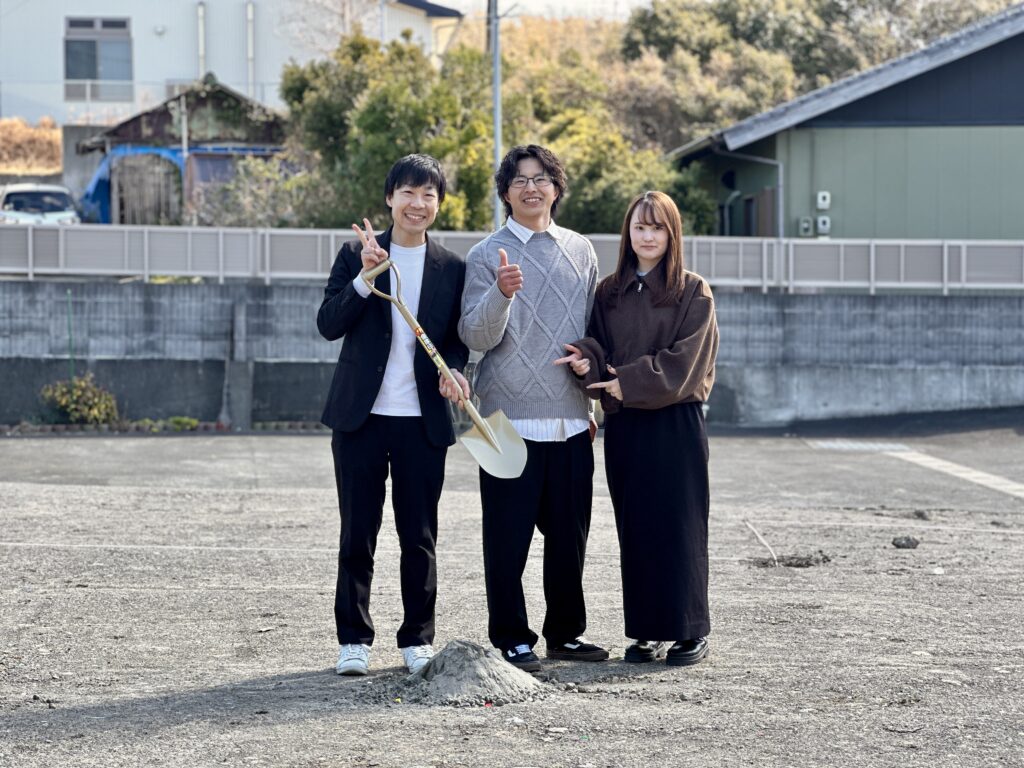 お二人がスタートでこれから工事が始まっていきます。その着工記念撮影会の様子です。