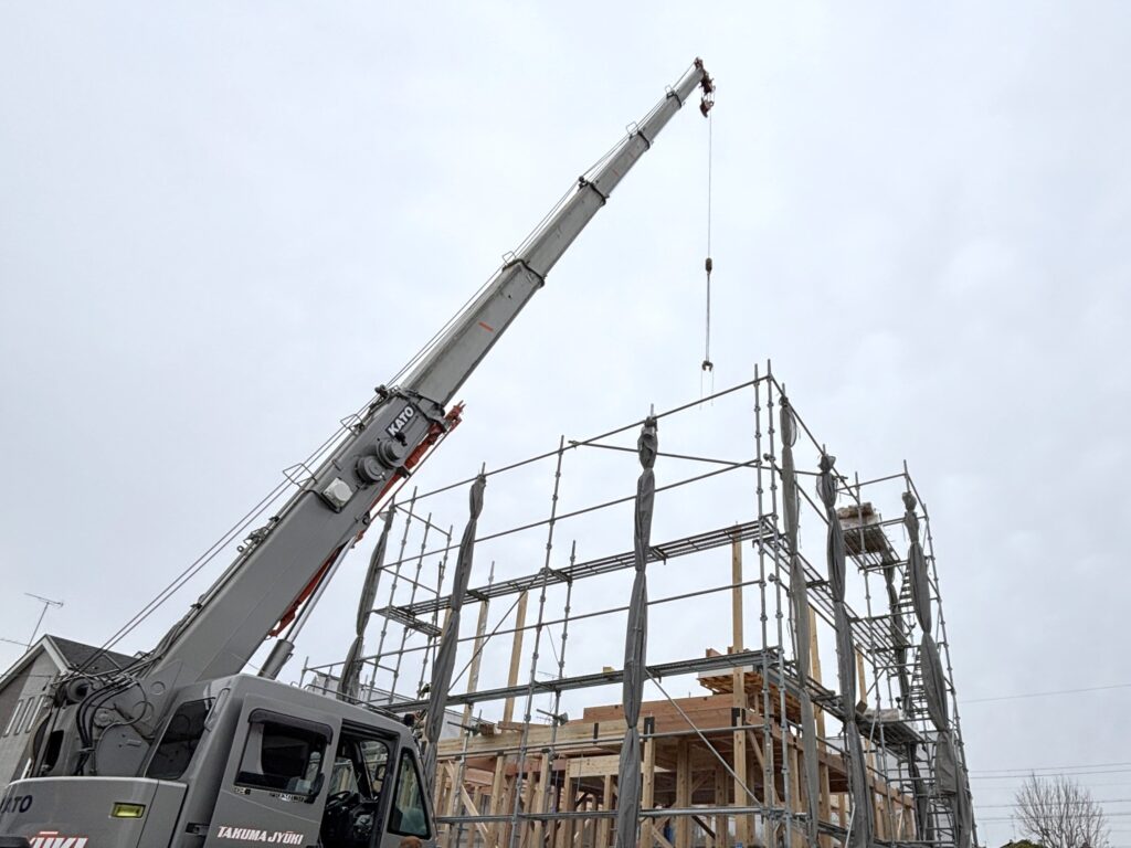 上棟を迎えると、ここから完成までの工事はおよそ数か月。これからもK様ご家族に安心して楽しみにしていただけるよう、安全第一で丁寧に工事を進めていきます。K様、このたびは本当におめでとうございます。