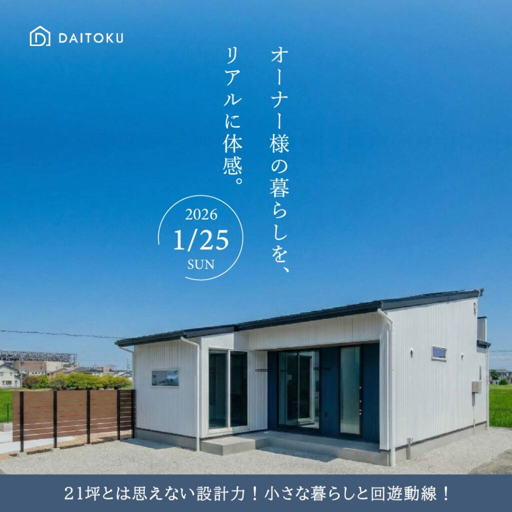 21坪のコンパクトな平屋を実際に歩くことで、「この広さで足りるのか」「平屋は自分たちに合うのか」を現実的な目線で確認できます。
