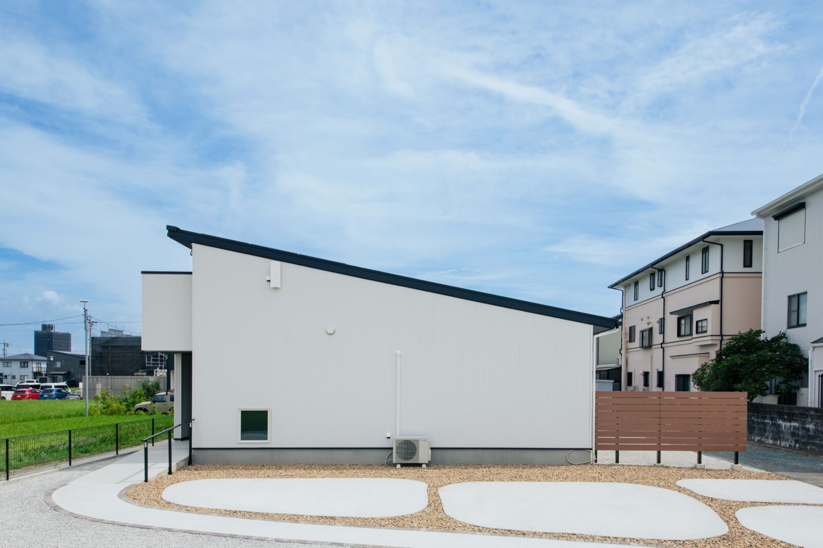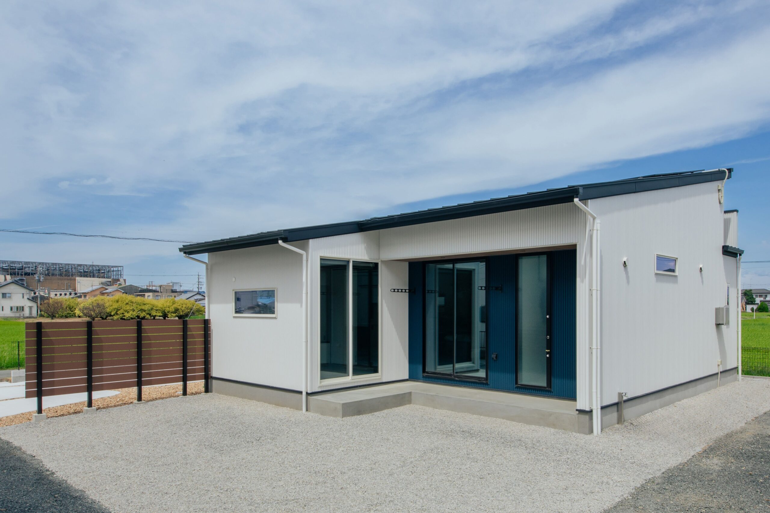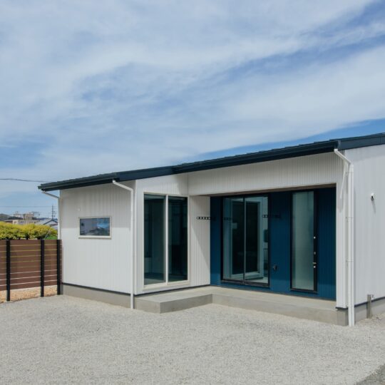 21坪でも豊かに暮らせる設計の工夫が詰まったコンパクトな平屋。白を基調とした外壁と間口を広くとった設計は、21坪とは思えないほどの堂々とした存在感を放ちます。一日の中で一番過ごす時間が長いLDKには勾配天井を採用し、実際の広さ以上の開放感を演出。日々の暮らしを支える動線設計にも徹底的にこだわりました。
