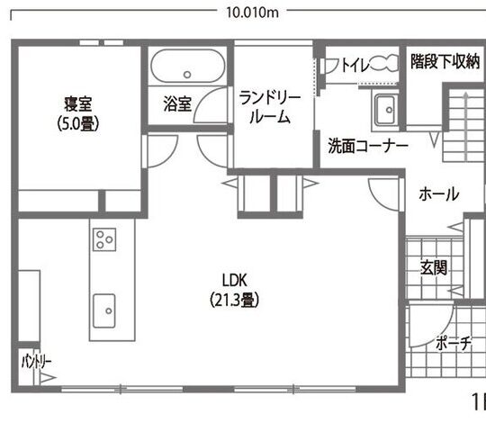 コンパクトながらも空間のつながりと独立性を両立させた32坪3LDKのお家。回遊動線でLDKから水まわり、玄関ホールまでぐるりと繋がる便利な設計が魅力です。
