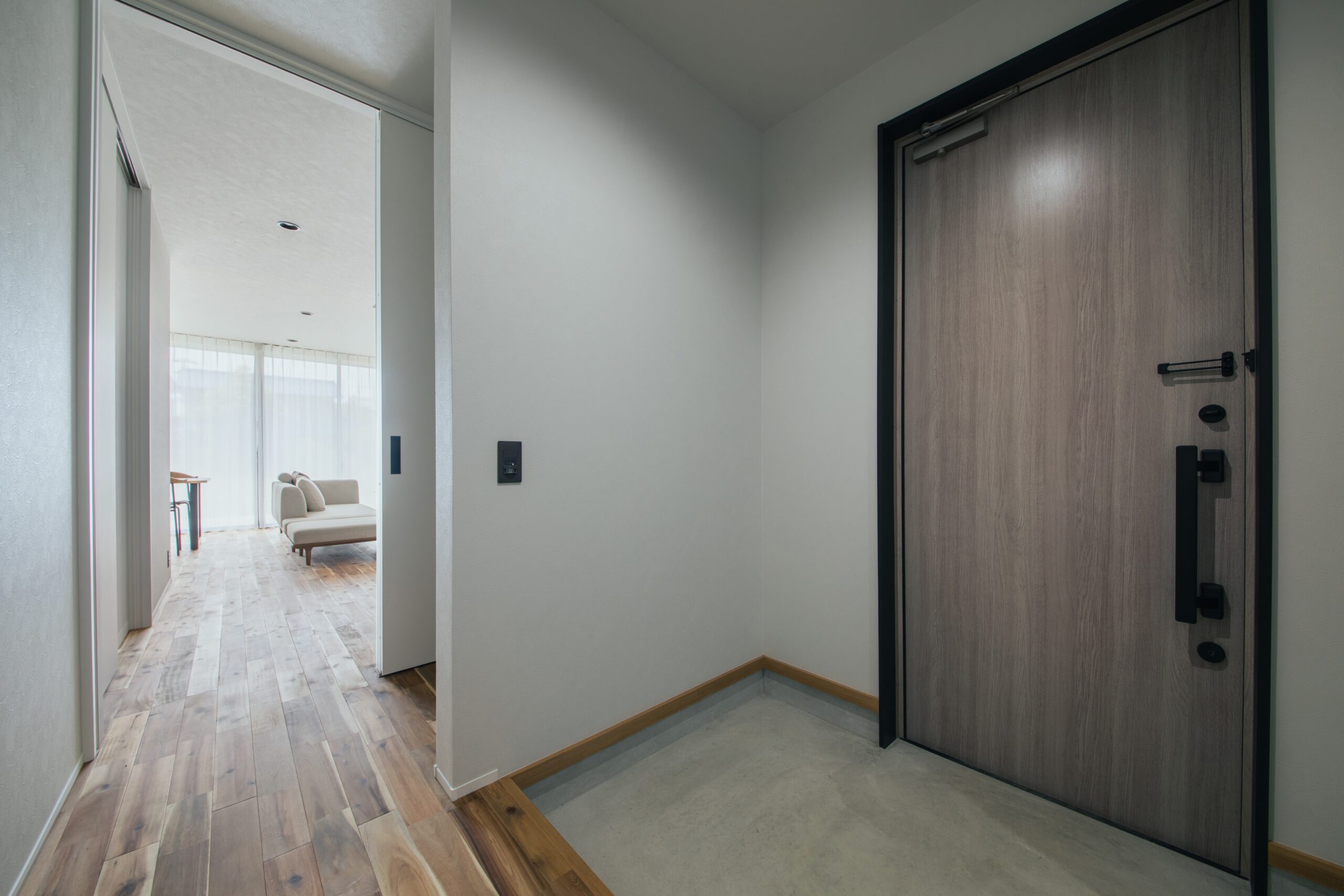 36坪4LDK、2階建ての高性能住宅を2,990万円で実現。C値0.3、UA値0.43のHEAT20 G2レベルをクリアした高気密・高断熱設計で、一年中快適な室内環境を保ちながら、シンプルでモダンなデザインを追求しました。