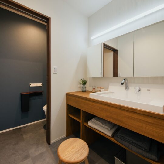 さらに、高気密・高断熱(C値0.5/UA値0.45)に加えて太陽光9.27kWを搭載し、光熱費の削減にも貢献。耐震等級3の取得と長期優良住宅仕様で、家族が長く安心して暮らせる住まいを実現しています。