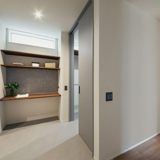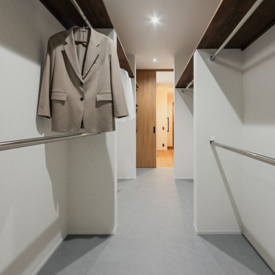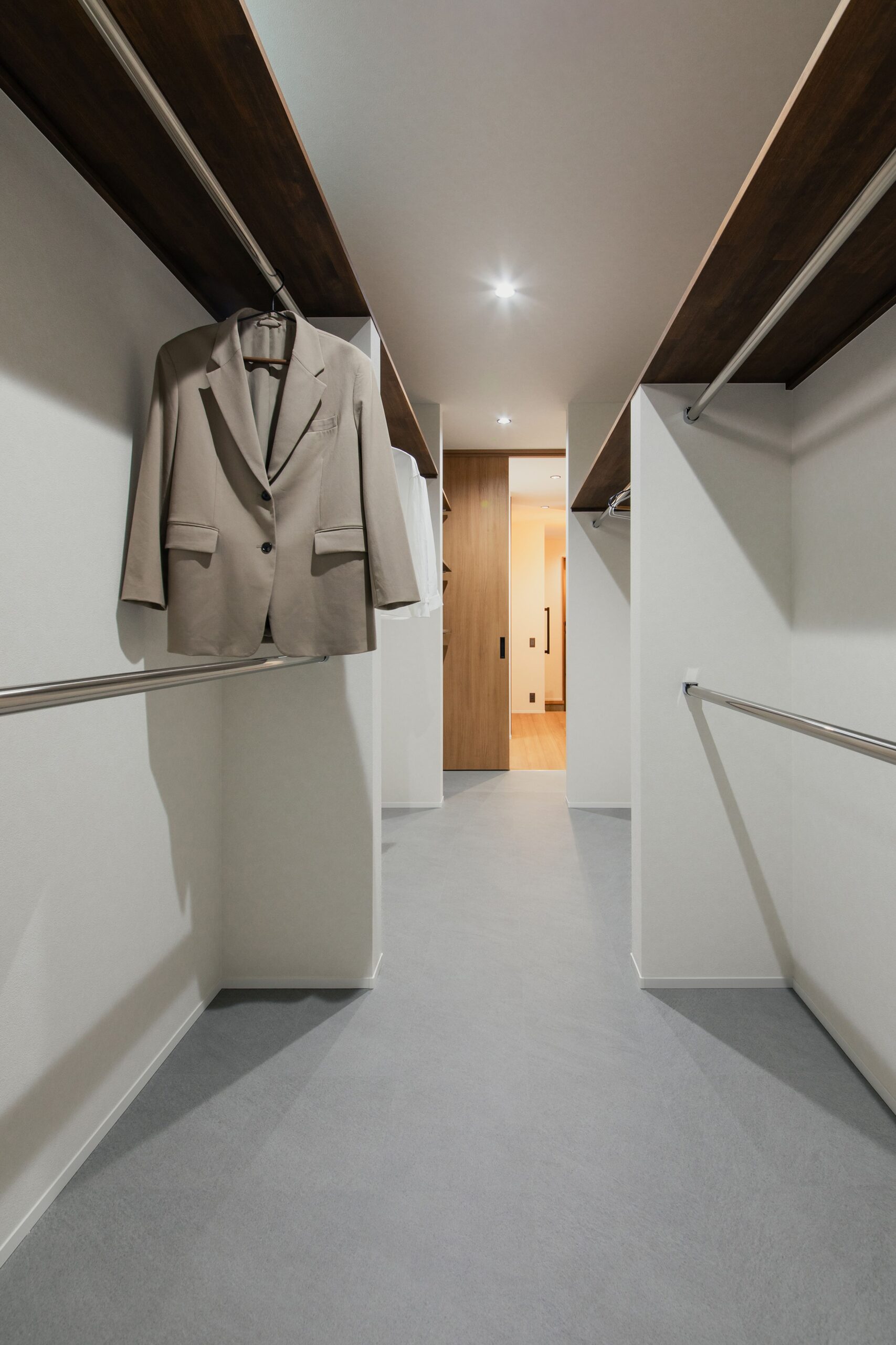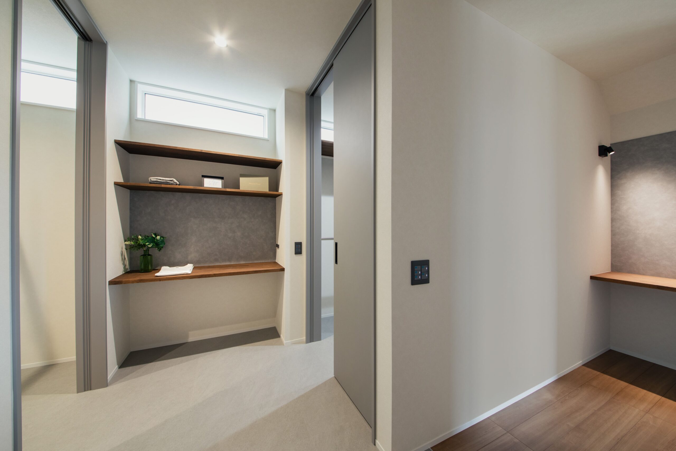 特に魅力なのが、洗面・ランドリー・大容量のウォークインクローゼットを直結した家事動線。「洗って、干して、しまう」までが、わずか数歩で完結するため、毎日の洗濯がぐっとラクになります。