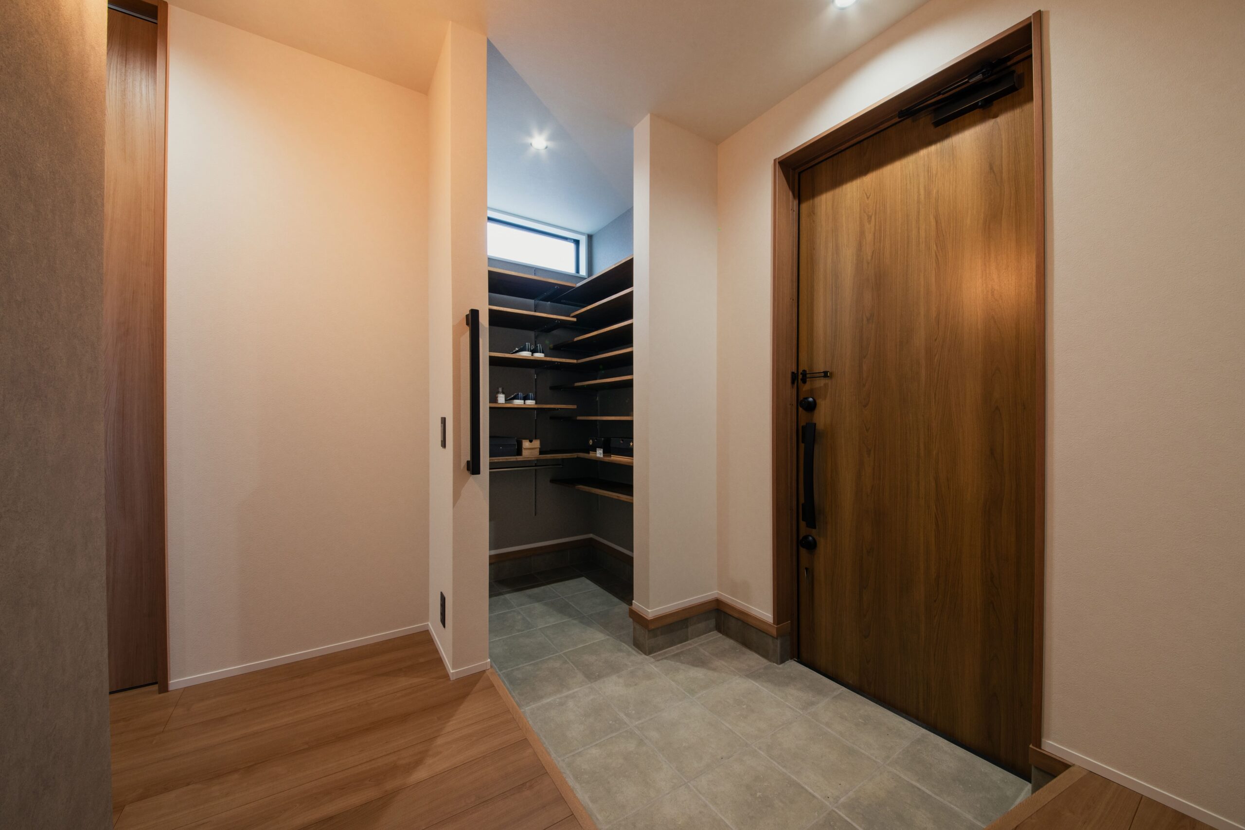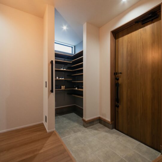 玄関のシューズインクロークやキッチン横のパントリーなど収納も充実し、散らかりがちな子育て世帯でもすっきりとした暮らしを実現。さらに1階に主寝室を設けることで将来は平屋のような暮らしも可能に。耐震等級3・高気密高断熱・長期優良住宅認定の高性能を備え、家族が安心して長く快適に暮らせる住まいです。